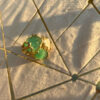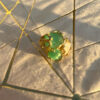 Une bague en laiton unique, mettant en valeur deux pierres précieuses : agate et oeil de chat.