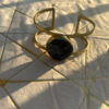Un bracelet en bronze agrémenté d’un mélange de perles vertes, créant un effet unique et vibrant.